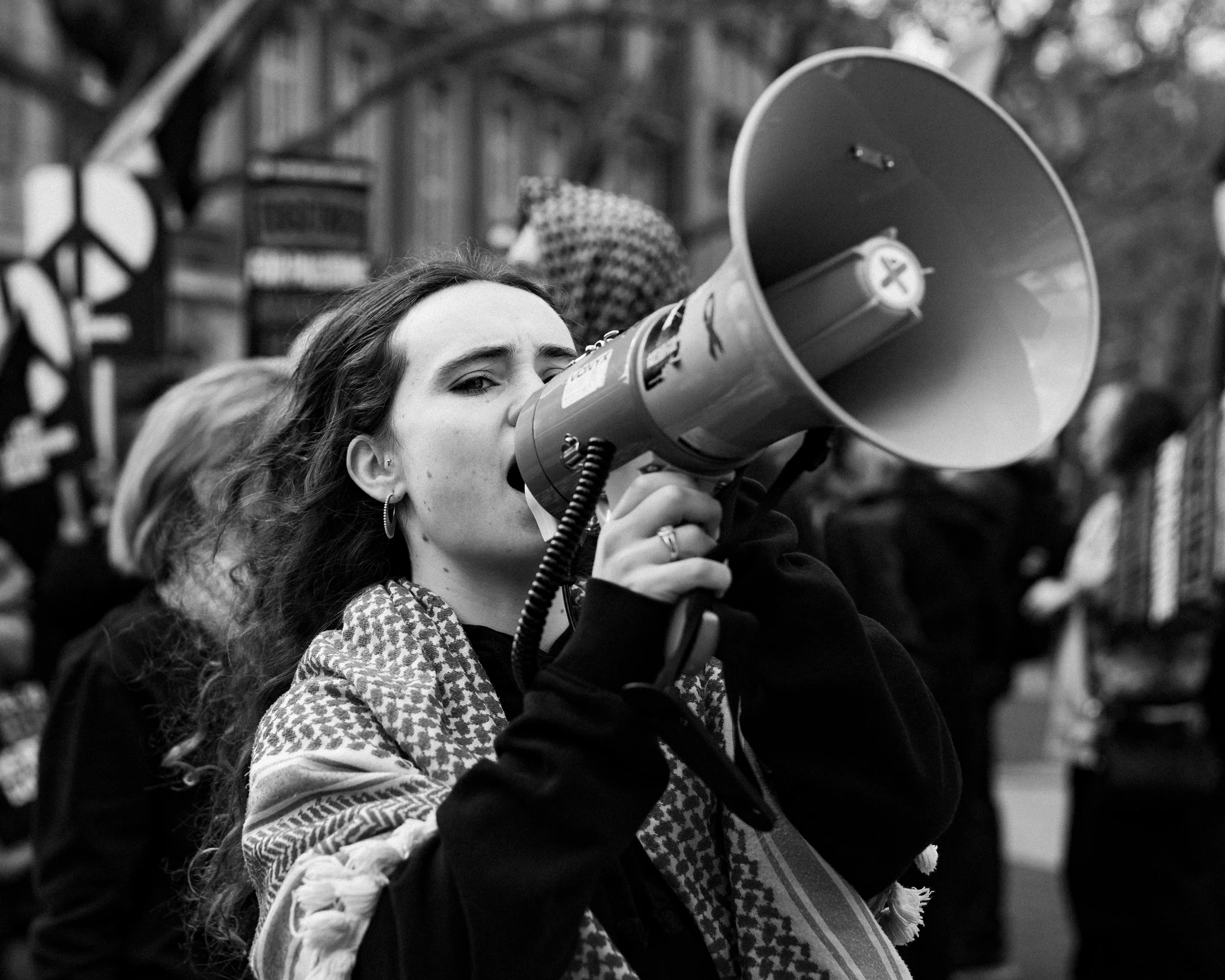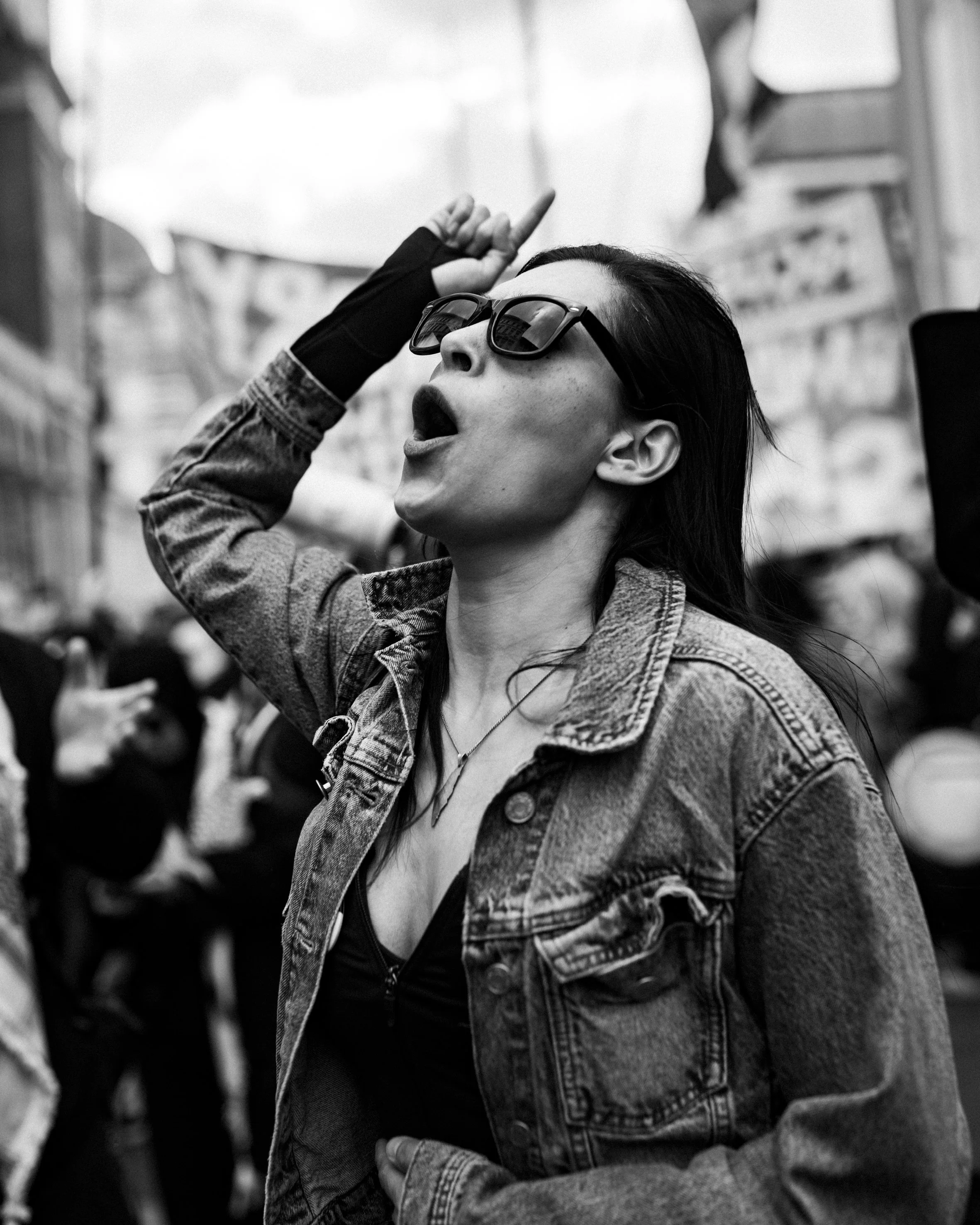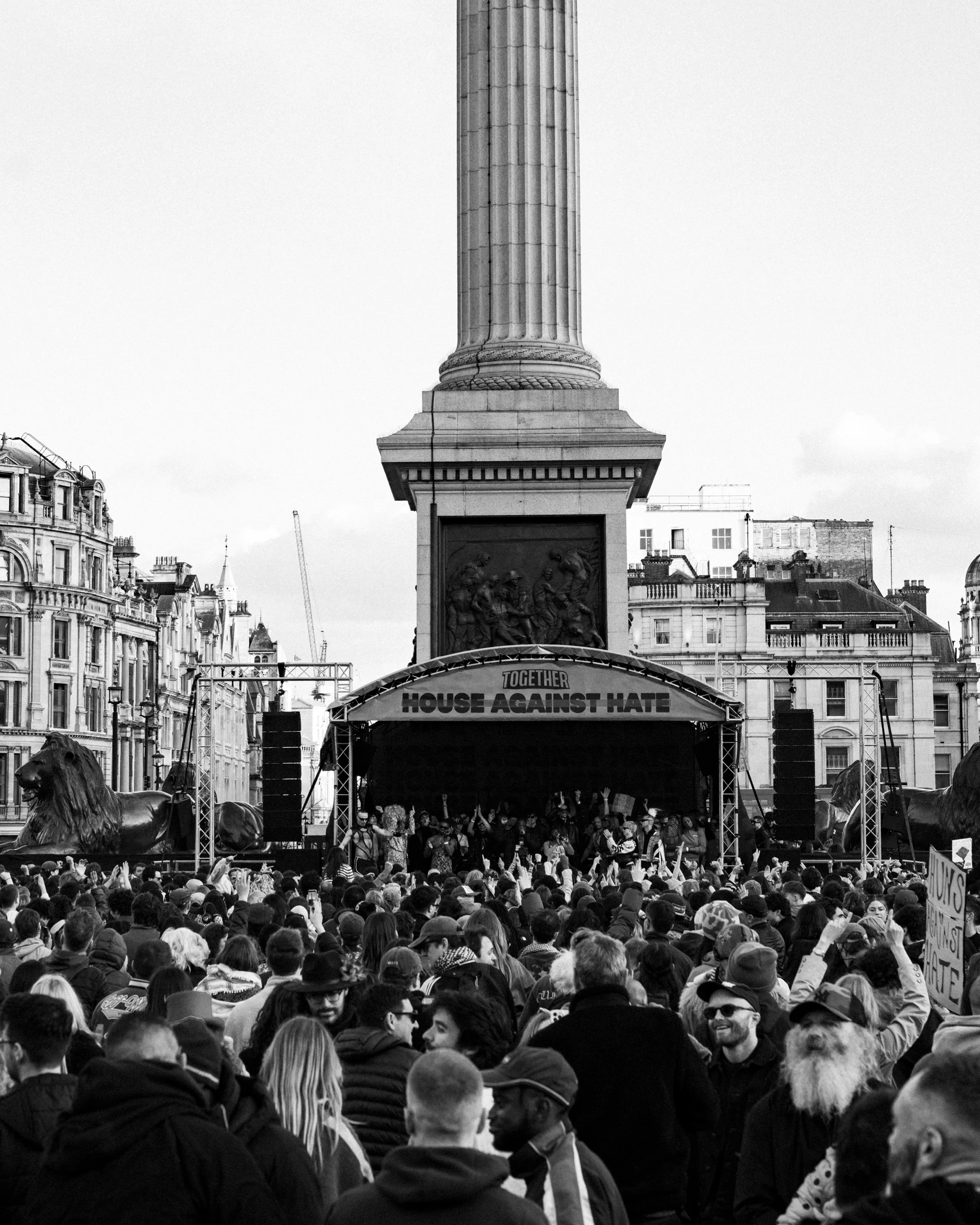 At the same time, another enormous demonstration was taking place: an anti–far-right march. As the day unfolded, these two vast crowds converged, merging into a single, powerful movement. Together, they continued towards Trafalgar Square, which quickly became so densely packed that many, myself included, had to redirect. I made my way towards Downing Street instead, where speakers addressed the crowd with passion and conviction.