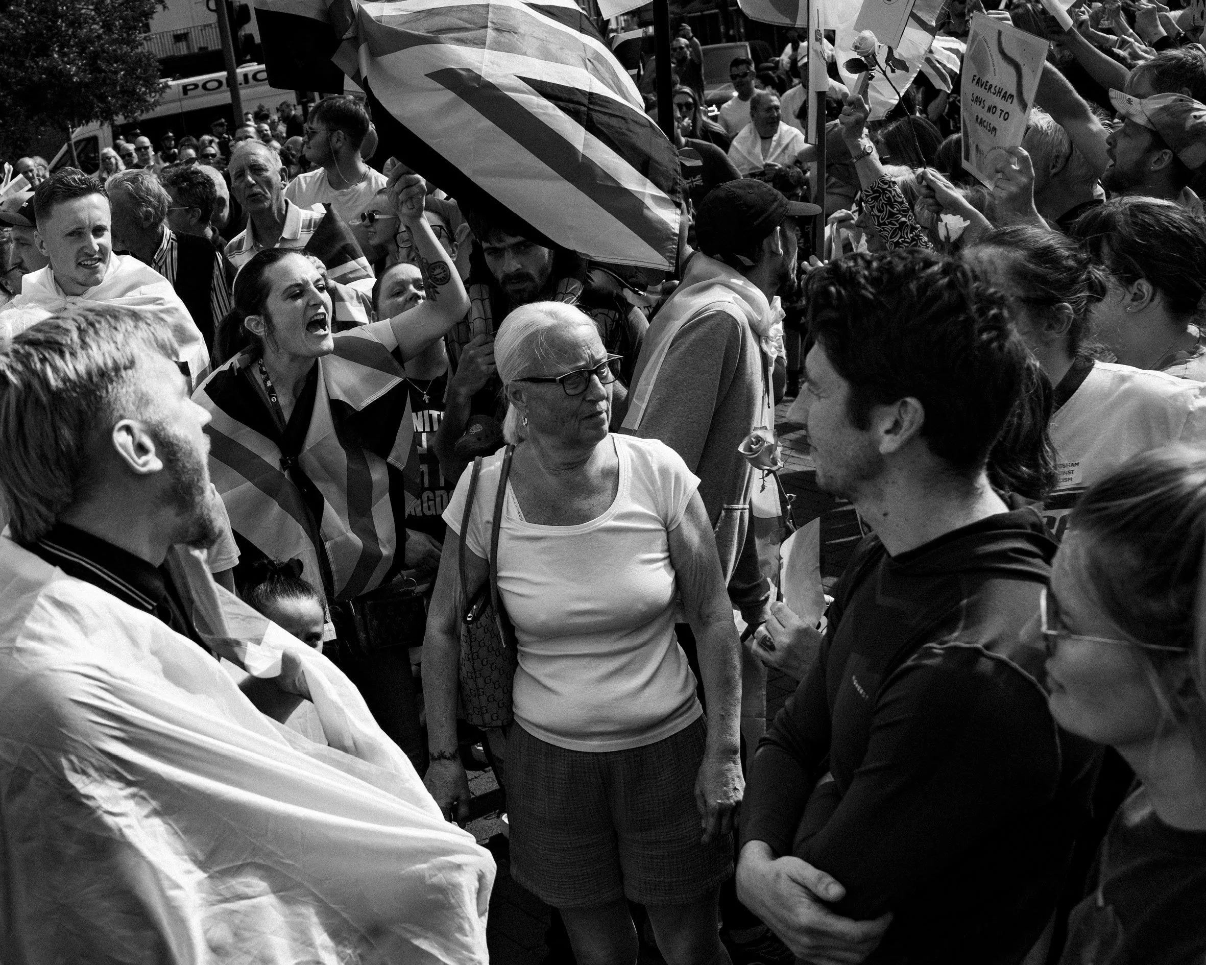 In the days leading up to the protest, the signs were already there. Dozens of St George’s Cross flags appeared around Faversham. It should be a symbol of pride, community, and shared history, but instead, it had been hijacked yet again by fear, ignorance, and divisive rhetoric.